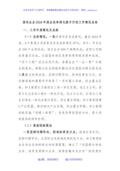 / 国有企业2024年国企改革深化提升行动工作情况总结