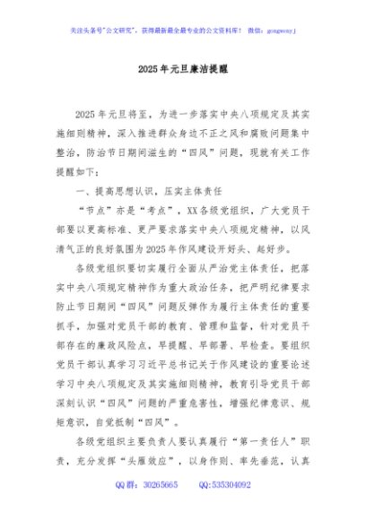 / 2025年元旦廉洁提醒