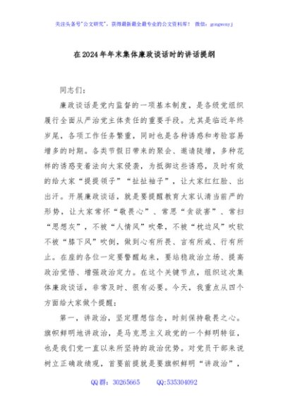 / 在2024年年末集体廉政谈话时的讲话提纲
