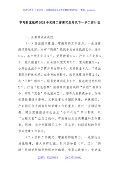 / 市两新党组织2024年党建工作情况总结及下一步工作计划