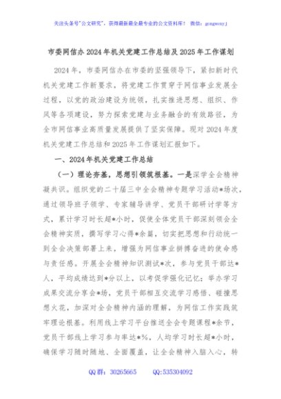 / 市委网信办2024年机关党建工作总结及2025年工作谋划