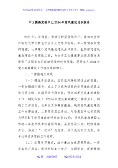 / 市卫健委党委书记2024年党风廉政述职报告