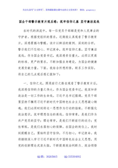 / 国企干部警示教育片观后感:筑牢信仰之基 坚守廉洁底线