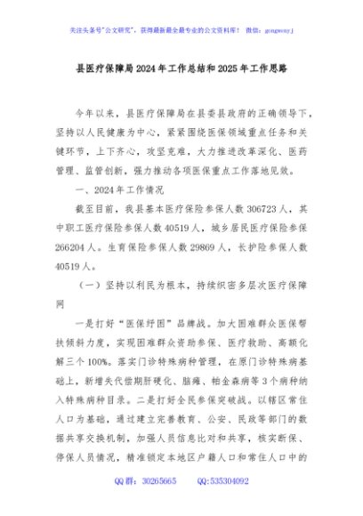 / 县医疗保障局2024年工作总结和2025年工作思路