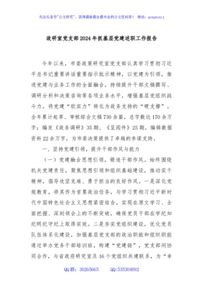 / 政研室党支部2024年抓基层党建述职工作报告