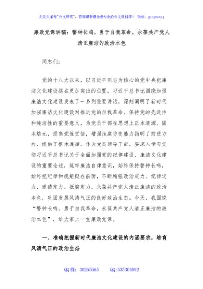 / 廉政党课讲稿:警钟长鸣,勇于自我革命,永葆共产党人清正廉洁的政治本色