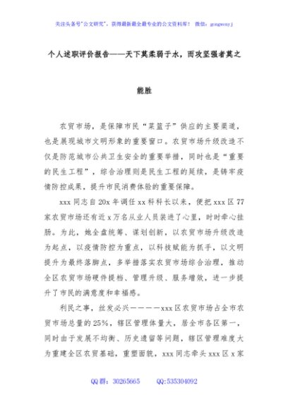 / 个人述职评价报告——天下莫柔弱于水,而攻坚强者莫之能胜