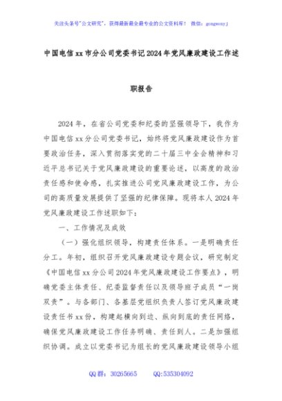 / 中国电信xx市分公司党委书记2024年党风廉政建设工作述职报告