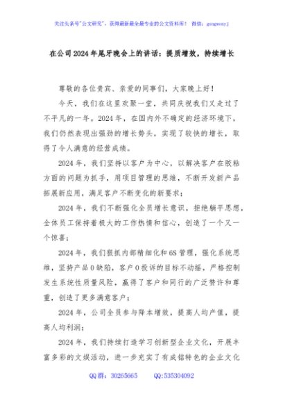/ 在公司2024年尾牙晚会上的讲话:提质增效,持续增长