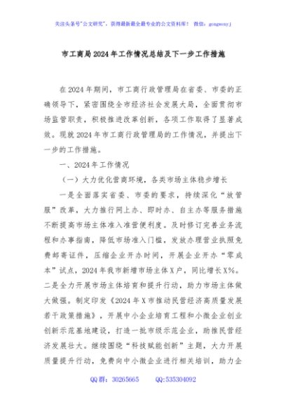 / 市工商局2024年工作情况总结及下一步工作措施