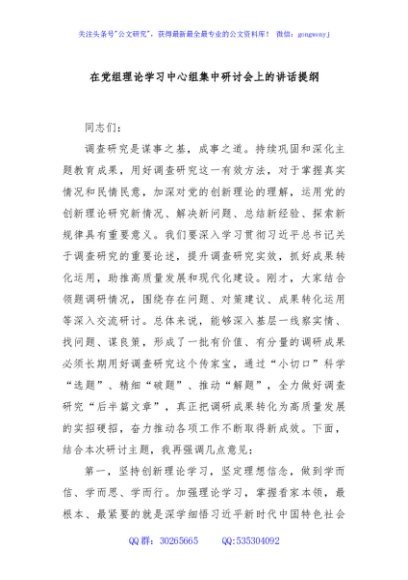 / 在党组理论学习中心组集中研讨会上的讲话提纲
