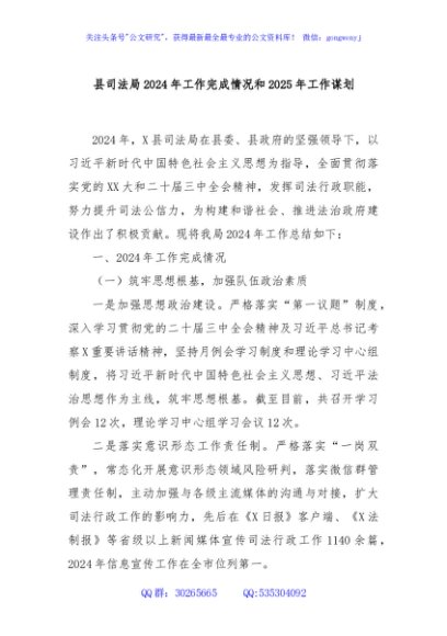 / 县司法局2024年工作完成情况和2025年工作谋划