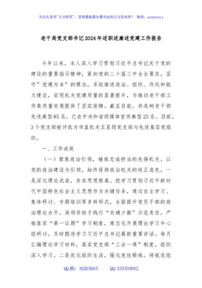 / 老干局党支部书记2024年述职述廉述党建工作报告