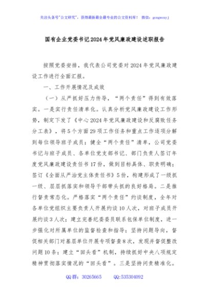/ 国有企业党委书记2024年党风廉政建设述职报告