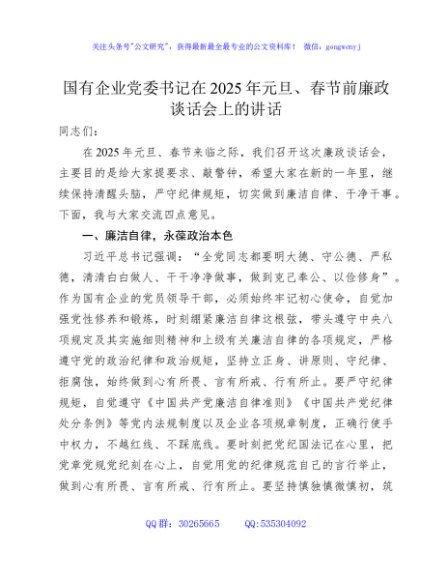 / 国企元旦、春节前廉政谈话会上的讲话