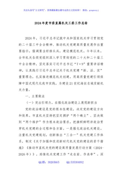 / 2024年度市委直属机关工委工作总结