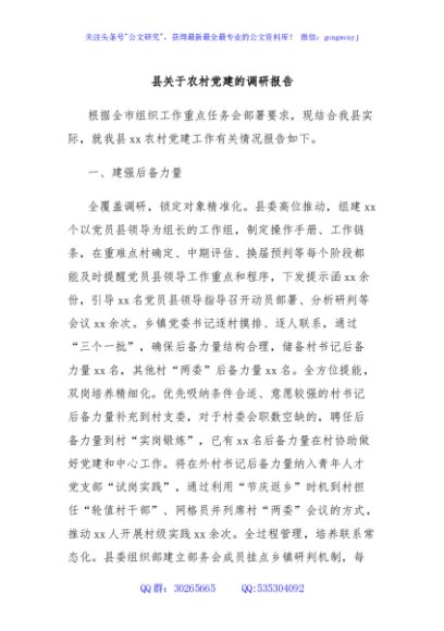 / 县关于农村党建的调研报告