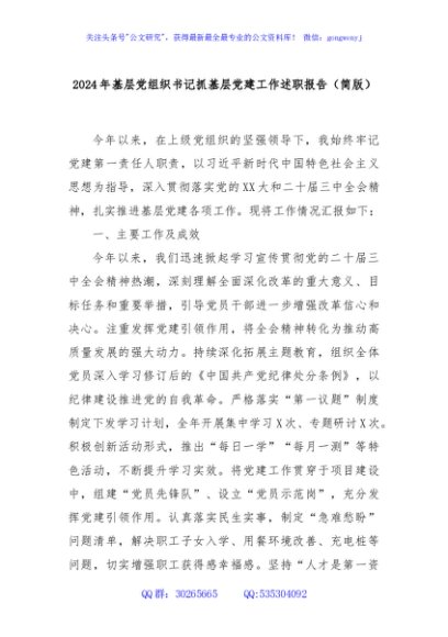/ 2024年基层党组织书记抓基层党建工作述职报告(简版)