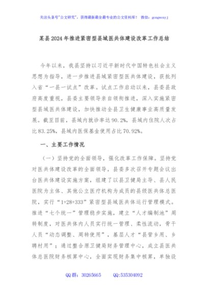 / 某县2024年推进紧密型县域医共体建设改革工作总结