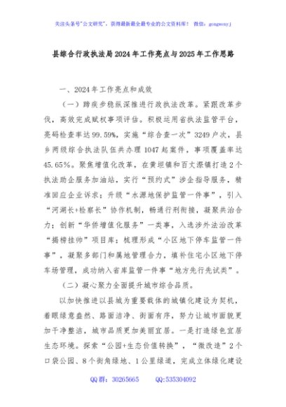 / 县综合行政执法局2024年工作亮点与2025年工作思路