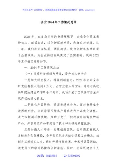 / 企业2024年工作情况总结