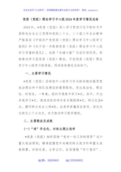 / 党委(党组)理论学习中心组2024年度学习情况总结
