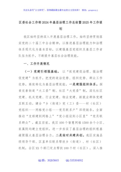 / 区委社会工作部2024年基层治理工作总结暨2025年工作谋划