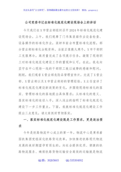 / 公司党委书记在标准化规范化建设现场会上的讲话