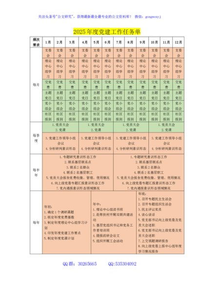 2025年度党建工作任务单