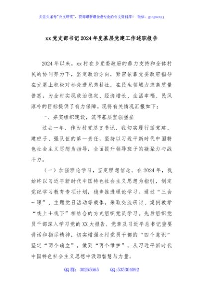 / xx党支部书记2024年度基层党建工作述职报告