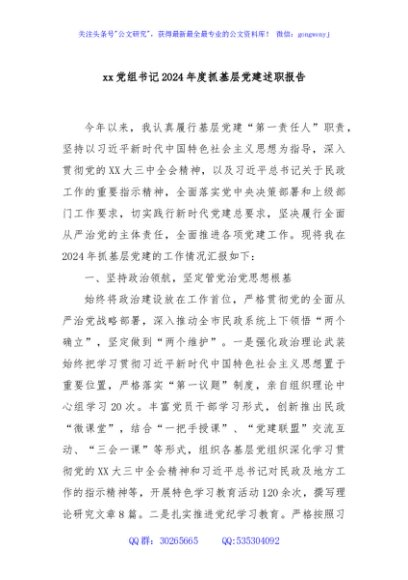 / xx党组书记2024年度抓基层党建述职报告