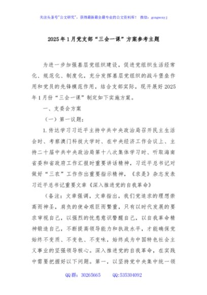 / 2025年1月党支部“三会一课”方案参考主题