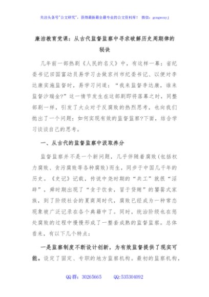 / 廉洁教育党课:从古代监督监察中寻求破解历史周期律的秘诀