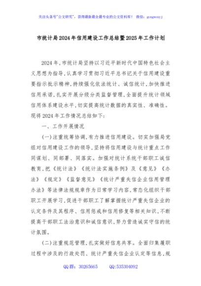 / 市统计局2024年信用建设工作总结暨2025年工作计划