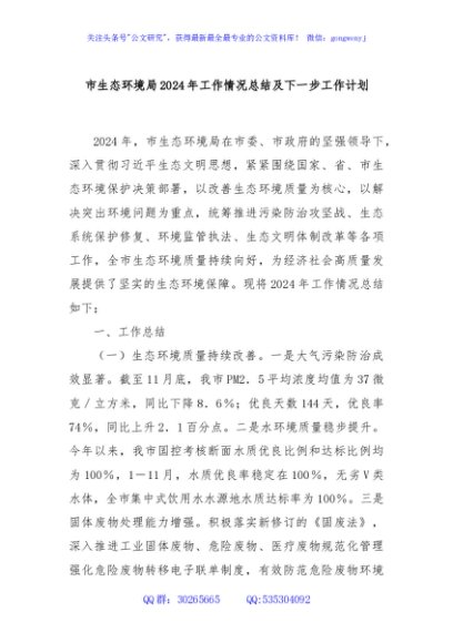 / 市生态环境局2024年工作情况总结及下一步工作计划