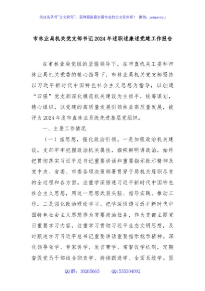 / 市林业局机关党支部书记2024年述职述廉述党建工作报告