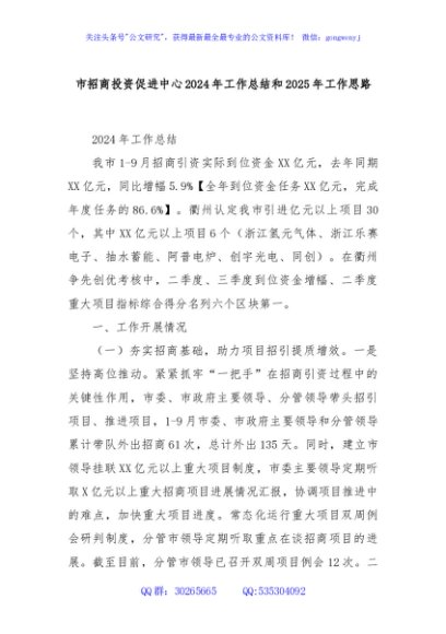 / 市招商投资促进中心2024年工作总结和2025年工作思路