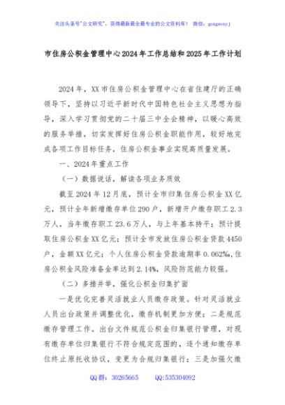 / 市住房公积金管理中心2024年工作总结和2025年工作计划