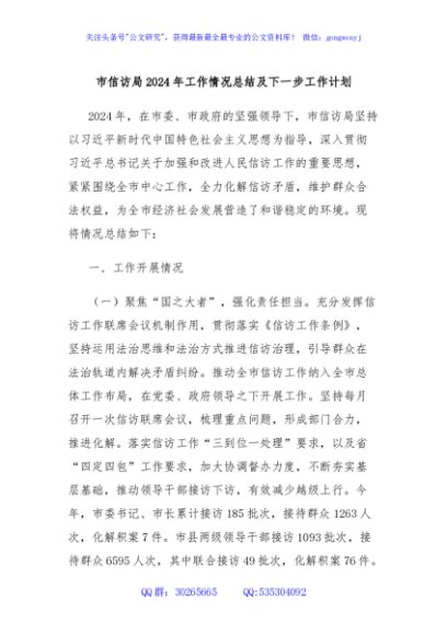 / 市信访局2024年工作情况总结及下一步工作计划