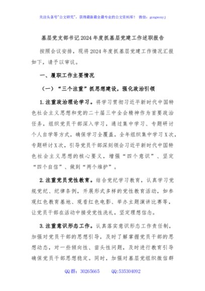 / 基层党支部书记2024年度抓基层党建工作述职报告