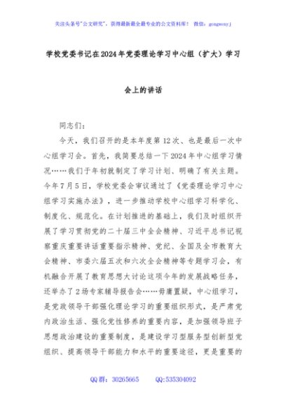 / 学校党委书记在2024年党委理论学习中心组(扩大)学习会上的讲话