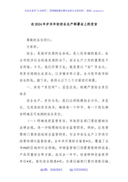 / 在2024年岁末年初安全生产部署会上的发言