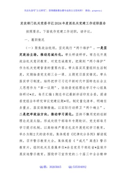 / 发改部门机关党委书记2024年度抓机关党建工作述职报告