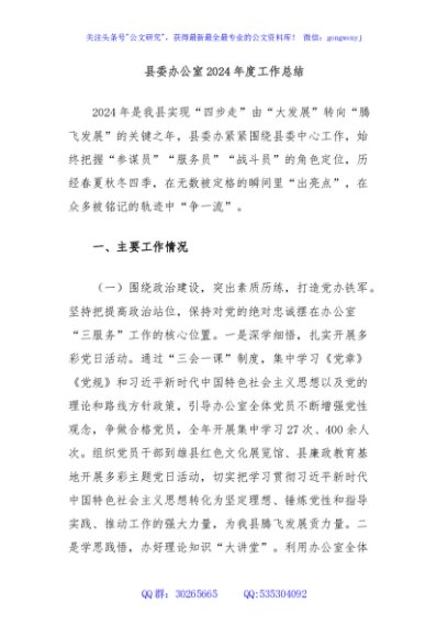 / 县委办公室2024年度工作总结