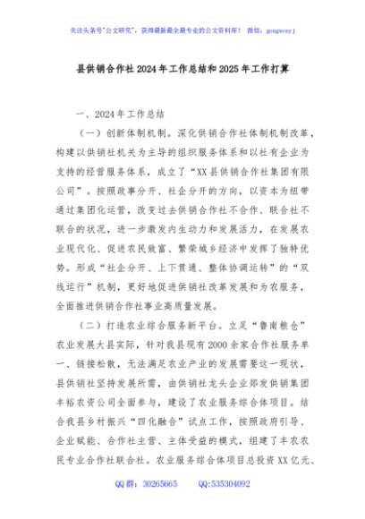 / 县供销合作社2024年工作总结和2025年工作打算