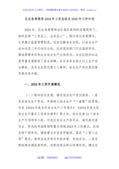 / 区应急管理局2024年工作总结及2025年工作计划