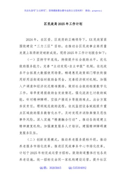 / 区民政局2025年工作计划