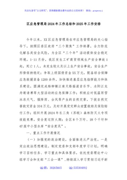 / 区应急管理局2024年工作总结和2025年工作安排