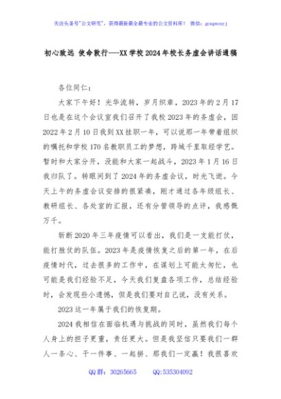 / 初心致远 使命敦行---XX学校2024年校长务虚会讲话通稿