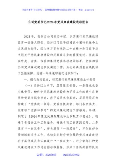 / 公司党委书记2024年党风廉政建设述职报告